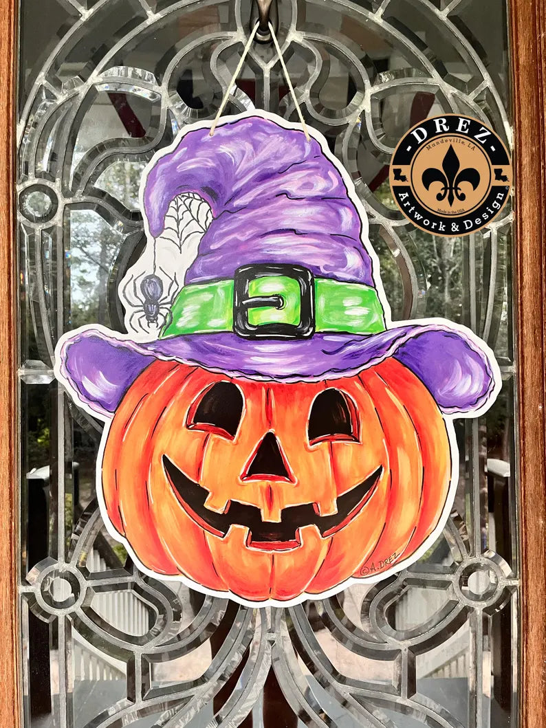 Pumpkin w/Witch Hat Door Hanger